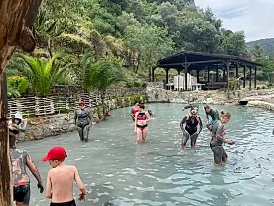Söylenen o ki çamurun üzerinizde kurumasi sonucu teniniz geriliyor ve kirisikliklari belli seanslar devam edildigi takdirde azaltiyor. Çamur maceranizdan hemen sonra gene isletme içinde yer alan sicak su kaynagina giriyorsunuz. Kaynagin, romatizmaya, bel rahatsizliklarina, siyatige iyi geldigi söyleniyor. Bizim gözlemledigimiz kadari ile sürülen çamurun vucüd üzerinde fiziksel degisiklik ve orada bulunan ziyaretçiler arasinda bir animasyon yarattigi bir gerçek. Bölgede birbirlerinin çamurlu hallerini gören turistler sakalasiyor ve bol bol fotograf çektiriyorlar. Saniriz bölgede bu sayede eglenceli bir aktivite kazaniyor.